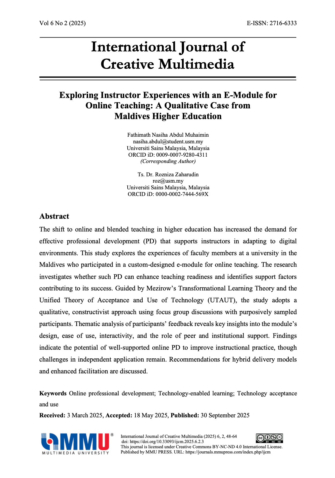 eISSN: 2716-6333 | Publisher: MMU Press | Access: Open
