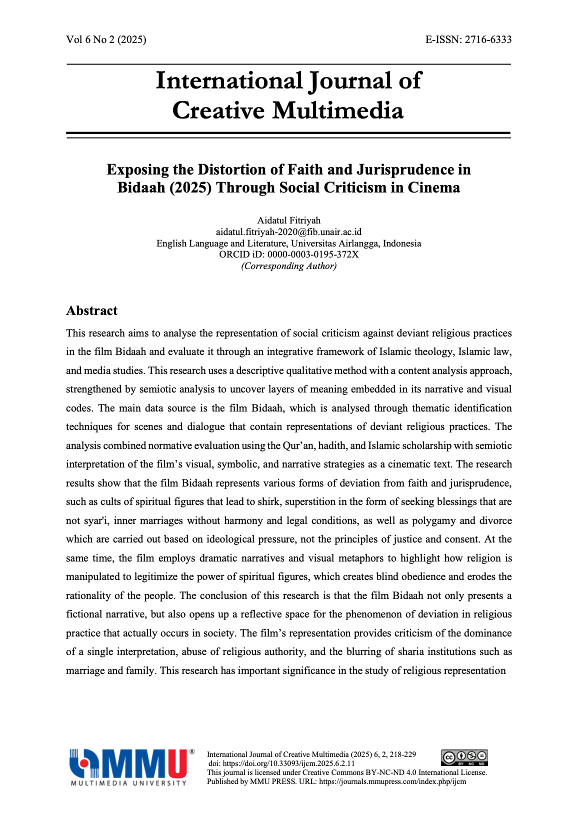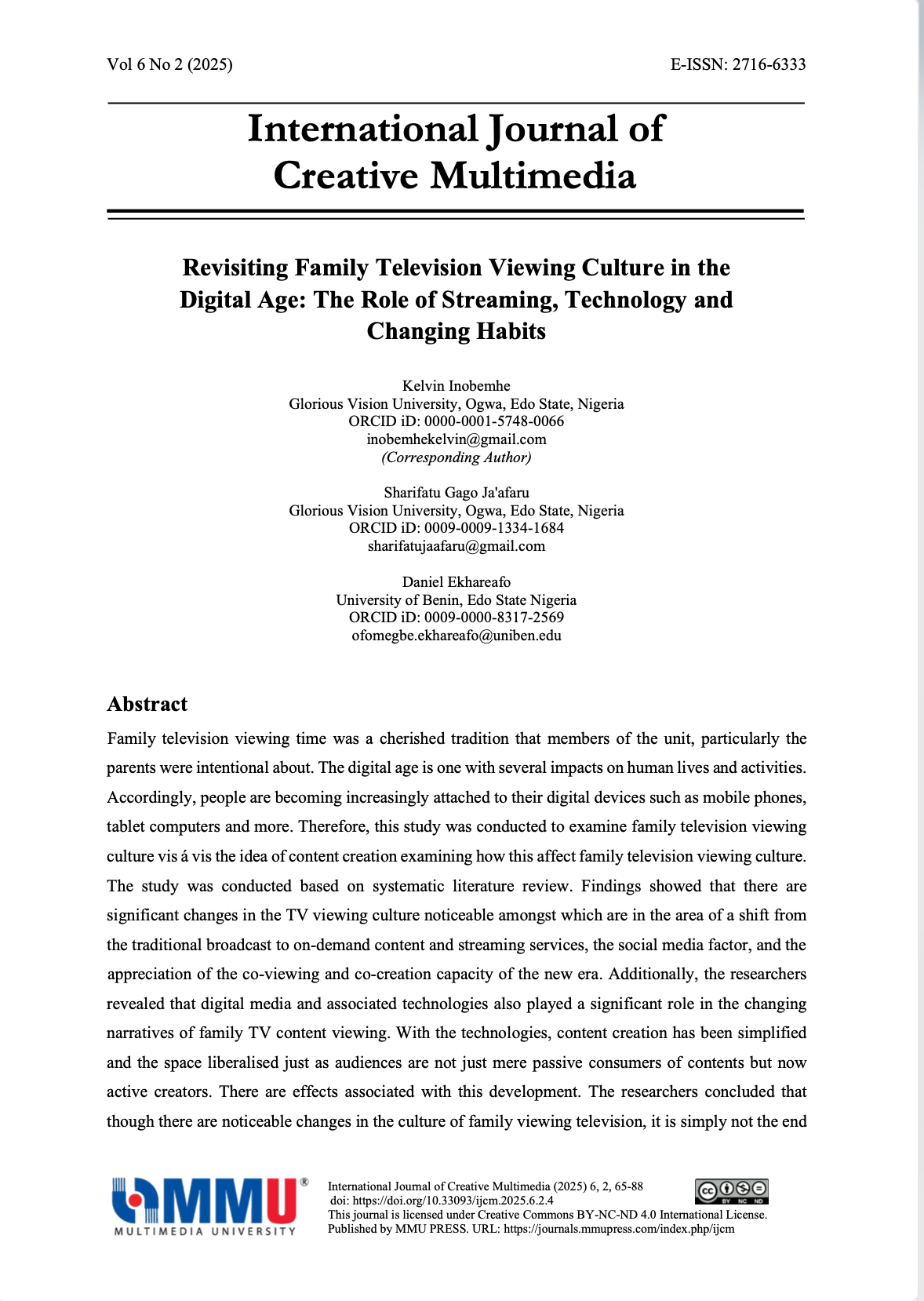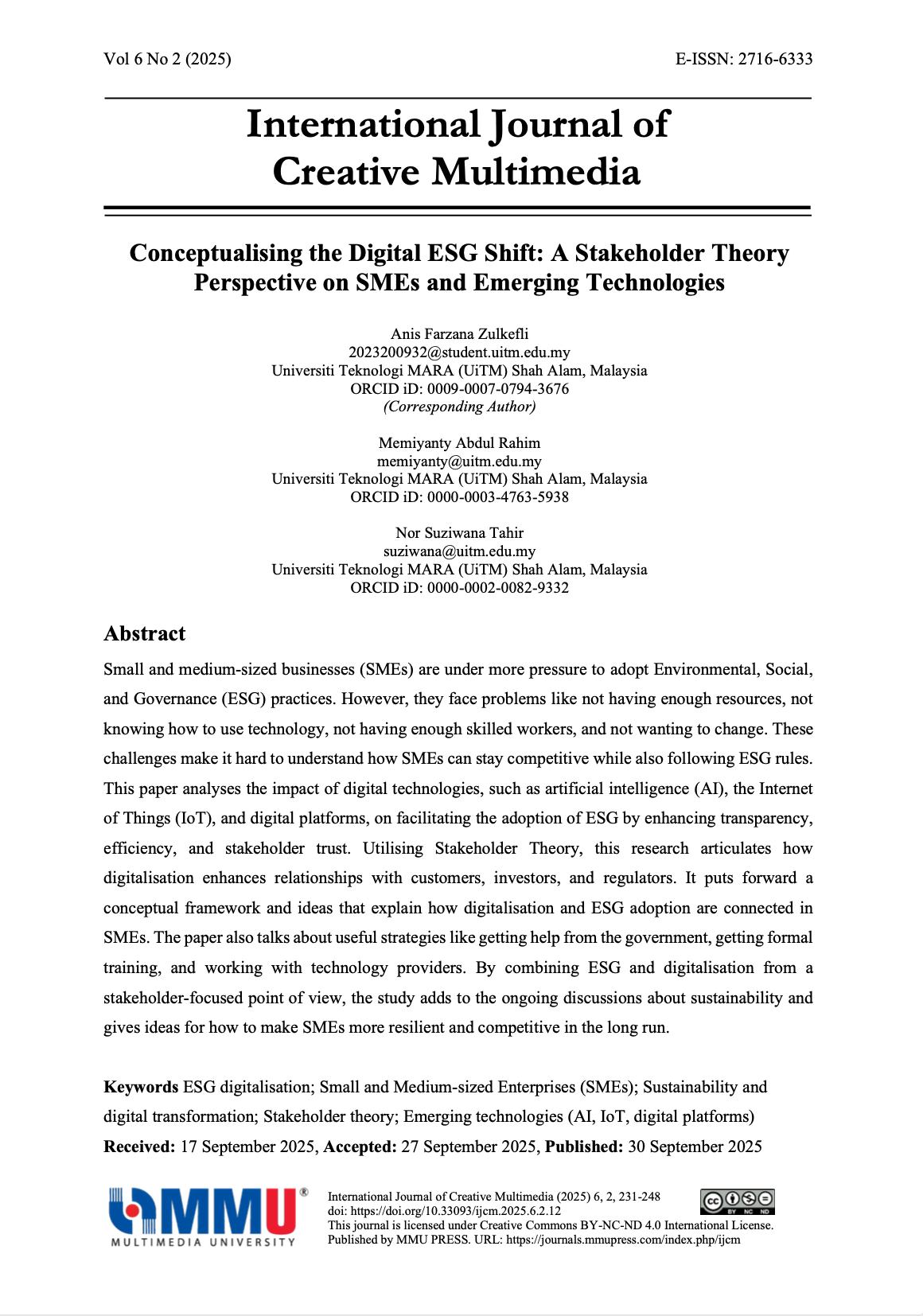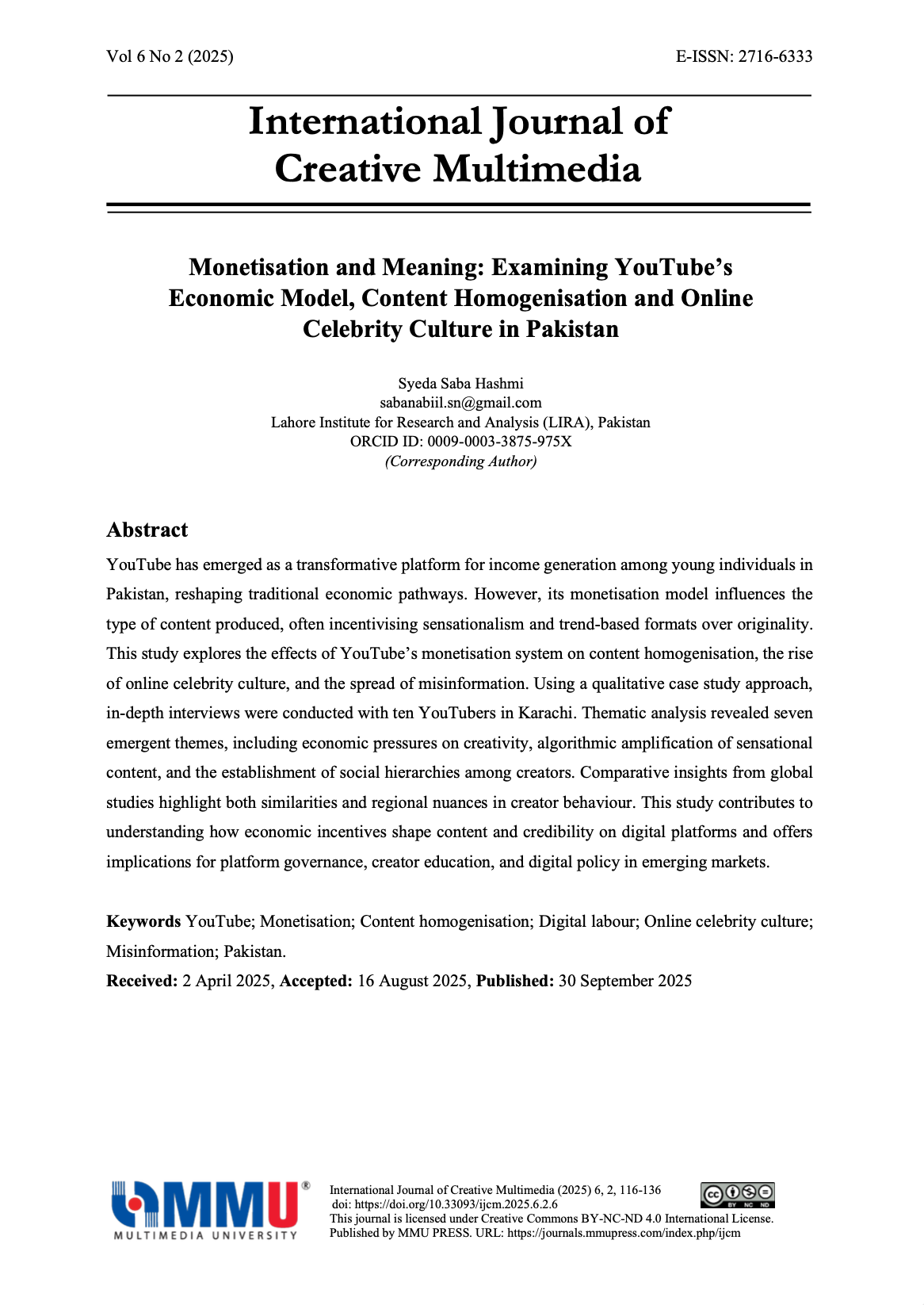 Vol. 6 No. 2 (2025): International Journal of Creative Multimedia